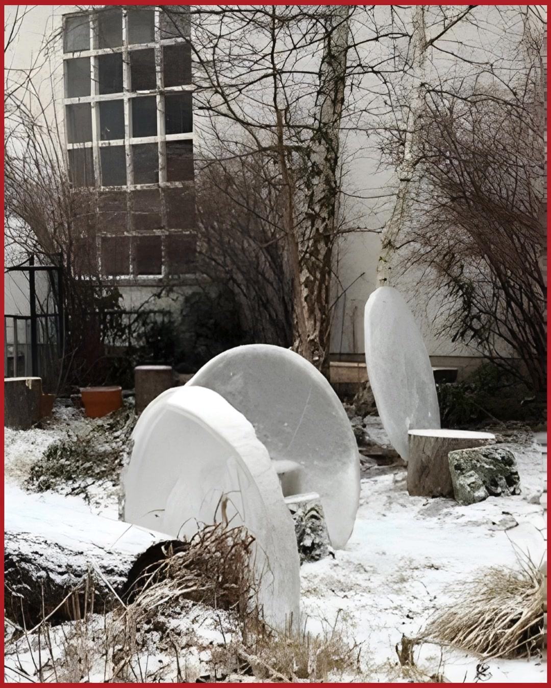 Aus gefrorenem Zufall wurden kleine Kunstwerke, verteilt über das Gelände unseres Klinikums.